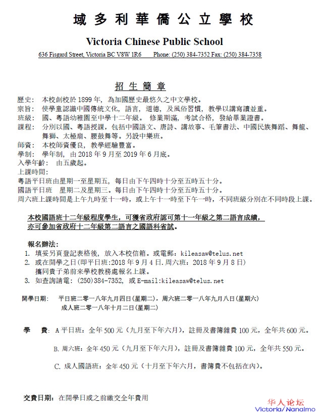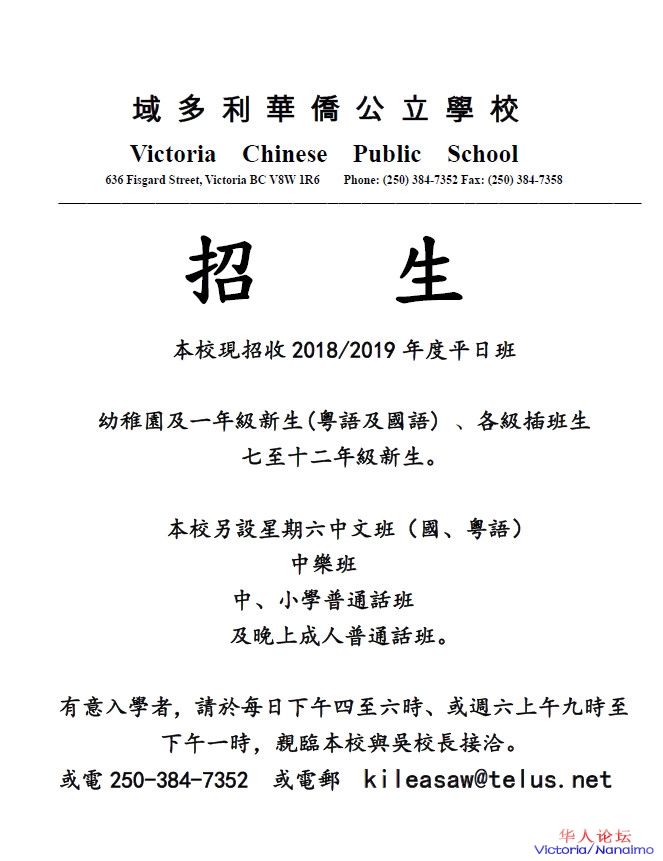» 报名啦 -维多利亚中文学校 - 百年历史,教书育人