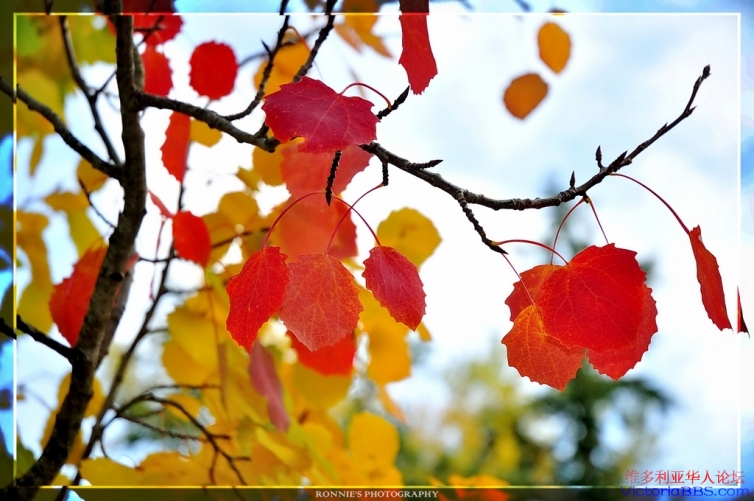 穿上秋的盛装,伴随风的节奏,在冬季来临前跳起彩色的舞步。各种姿态的叶子在这个十月再次被季节染上一年一个轮回的色彩。时间一次次扯落树叶,划开空气的阻力,也在我们脸上划下年长一岁的痕迹。终究,落在我们脚下的叶子已不是去年那片。年年岁岁花相似,今夕何夕兮,今日又何日,天长地久,也许只是时间的荒谬。 但至少我们应该庆幸,因为不论年长年少,相比于叶子,至少我们总是有机会期待下一个春天。所需要做的,就是好好地把握、珍惜每一天,让自己的生命更加多姿多彩。