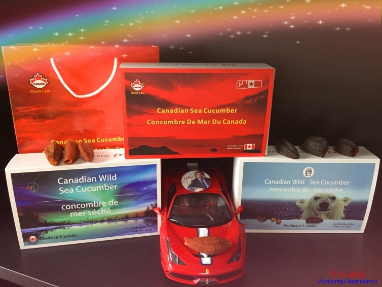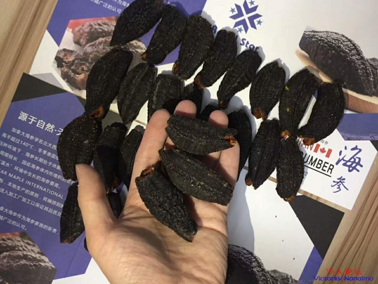 加拿大海参,牠是一种名贵海产动物,生活于北极大西洋水域大约50英呎深的冷水中,该水域水温低于摄氏13°C,冬季水面结冰,终年人迹罕至并无污染的环境下生长8年。故营养价值非常高,专家曾检测北美刺参营养价值高于日本海