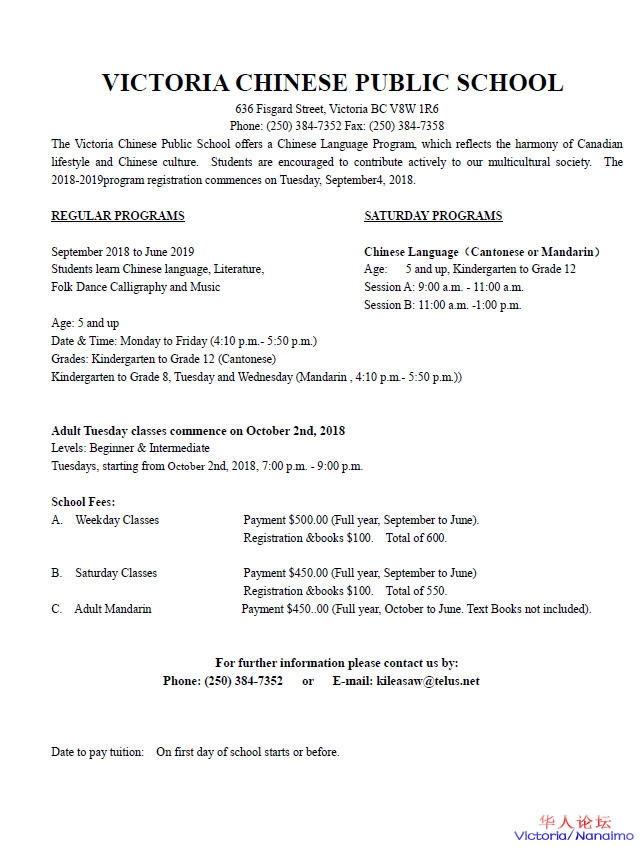 » 报名啦 -维多利亚中文学校 - 百年历史,教书育人