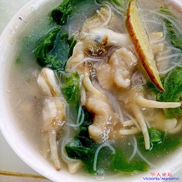 港头蛏滑粉采用独特的做法,将港头镇当地产的特色港头蛏生剥取肉,保持了蛏的鲜味,肉质鲜美。汤中加入了酸笋丝,鲜嫩适口,非常美味。