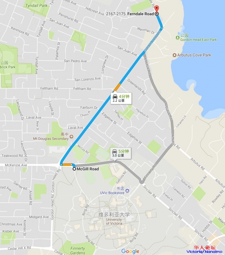 ,及Mt Douglas Secondary School,开车9分钟到Camosun。