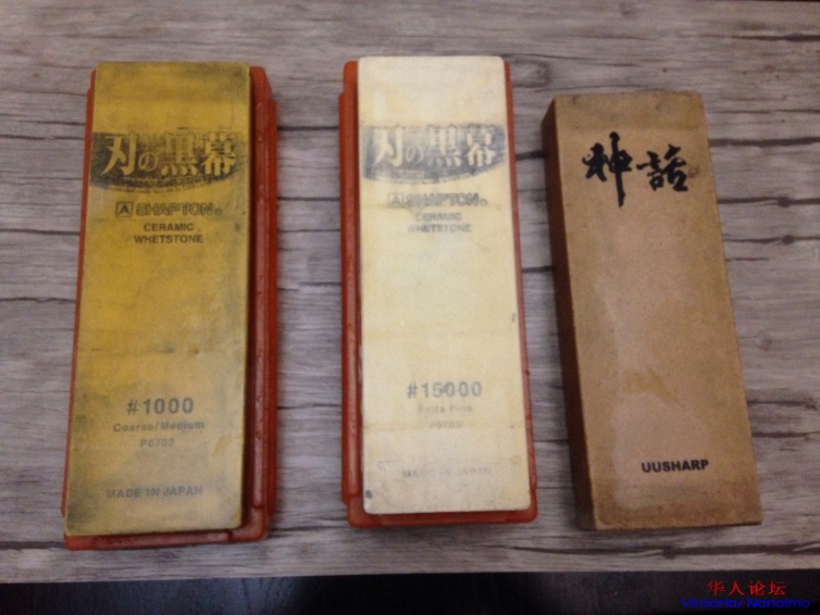 刃之黑幕1000目 和15000目, 神话6000目, 日本天然砥石 正本山 仕上砥。