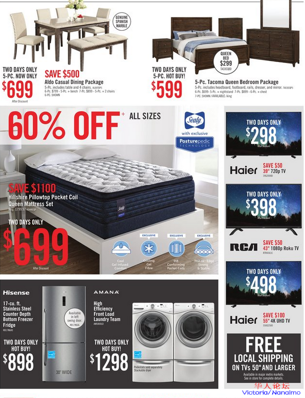 服务本地居民45年之久,本周末几十种商品打折,床头床架$299起,海尔海信冰箱以及55寸4KTV仅要$498,美的洗碗机,这些华人品牌在The Brick皆有折扣。' _6 [' ^8 V7 V$ I- @! ?, i