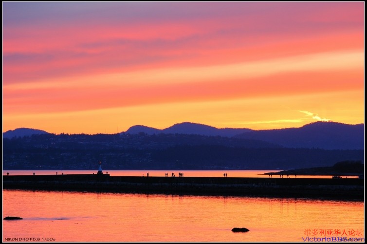 说明:某年某月某一日晚霞中的James bay 以及Ogden point。记得当时的我一边拍片,一边叹气,心里其实很有些羡慕那些行走在梦幻光影中的人们。